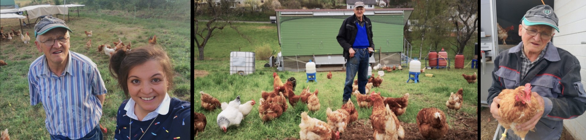 Um unsere geliebten Tiere und den Hof kümmert sich hauptsächlich Josef mit großer Leidenschaft und Temperament. Die Herstellung und der Handel von Brennholz ist sein Steckenpferd, die Hühnerbande darf aber in seinen Augen nie zu kurz kommen. Außerdem engagiert er sich ehrenamtlich und ist daher trotz seiner über 70 Jahren immer noch fit.